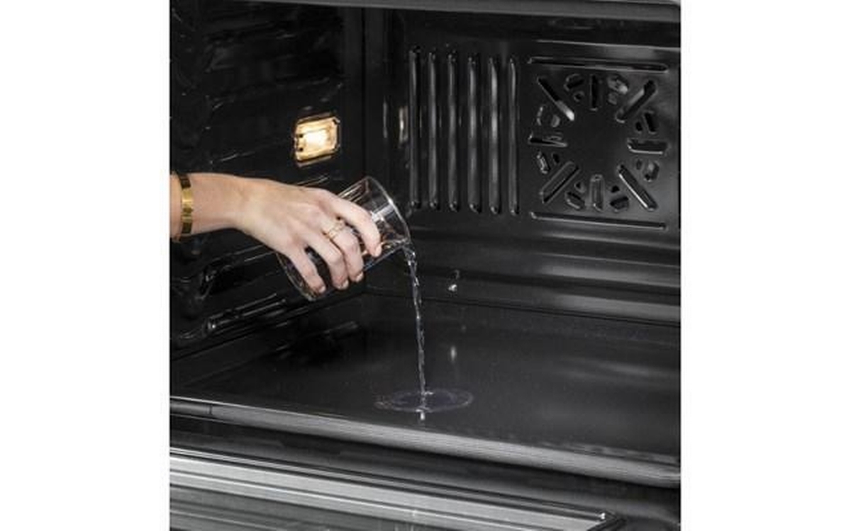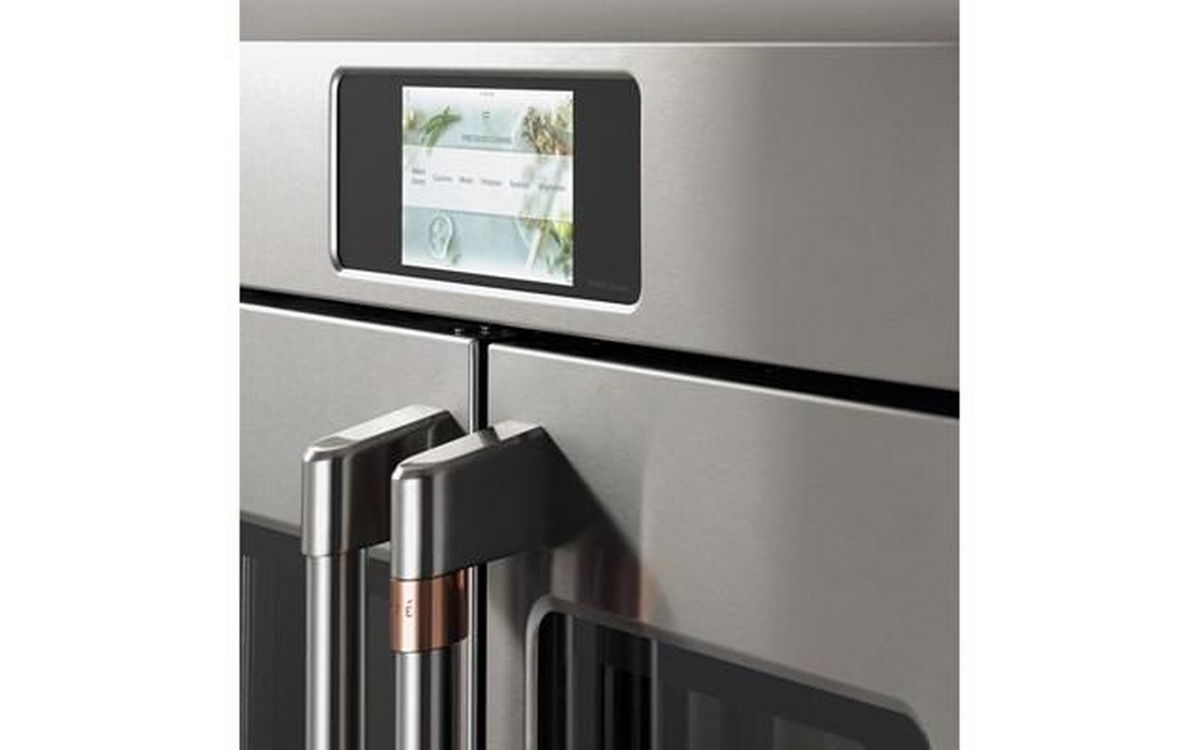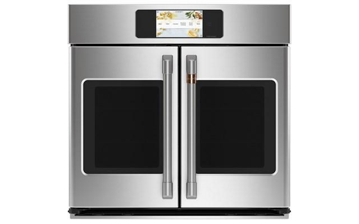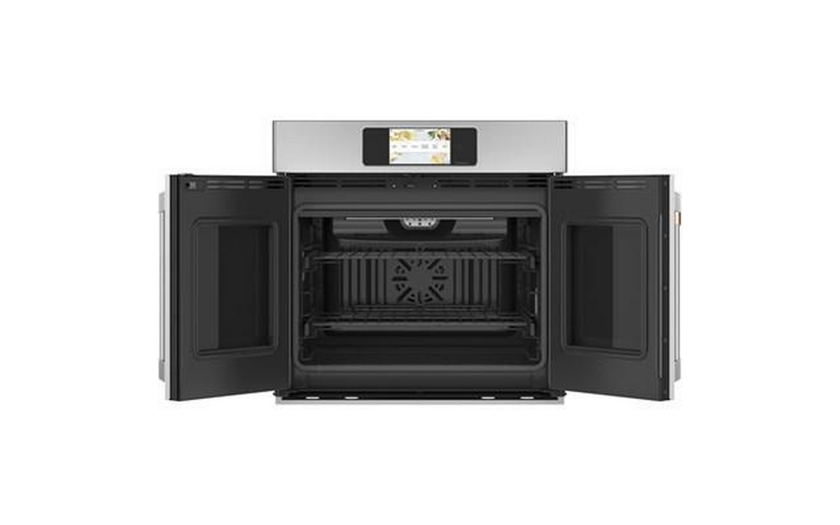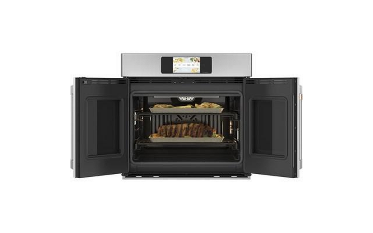 This 30-inch wide Café french-door wall oven features True European Convection with Direct Air, self-clean with steam clean option, a 7" full-color touch LCD screen and a 5.0 cu.ft. oven capacity.