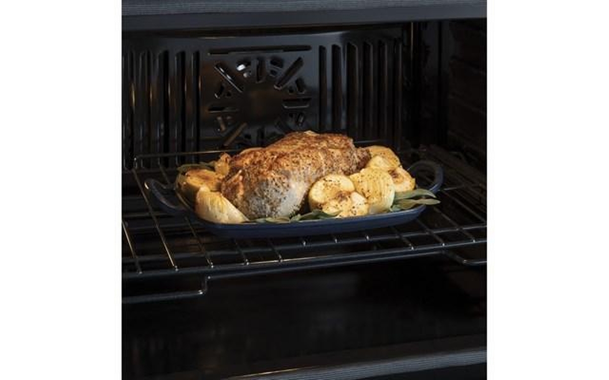This 30" GE Profile™ Series single wall oven is designed to make every dish you cook the best it can be. It features a true European convection with Direct Air, a system that bakes foods evenly. 10-pass bake and broil elements further ensure even cooking. And with a 5.0 cu. ft. capacity, you can cook plenty. It also offers a self-clean function and heavy-duty racks that you leave in the oven during self-cleaning.