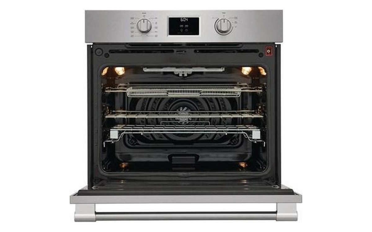 Frigidaire Professional 30" Single Wall Oven with Total Convection. The Total Convection gives you maximum versatility in the kitchen, powering cooking modes like Air Fry, No Preheat, Slow Cook, Convection Bake, Steam Bake, Convection Roast, Steam Roast and more!. The Air Fry allows you to make healthier and delicious meals for the entire family, right in your oven.