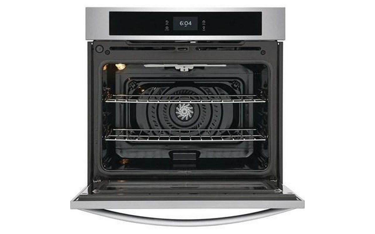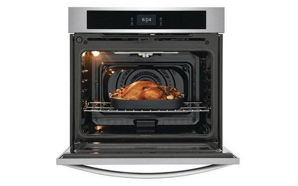 This Frigidaire 30-inch wall oven features Convection Technology, self-clean oven, a hidden bake element and a total capacity of 5.3 cu.ft.