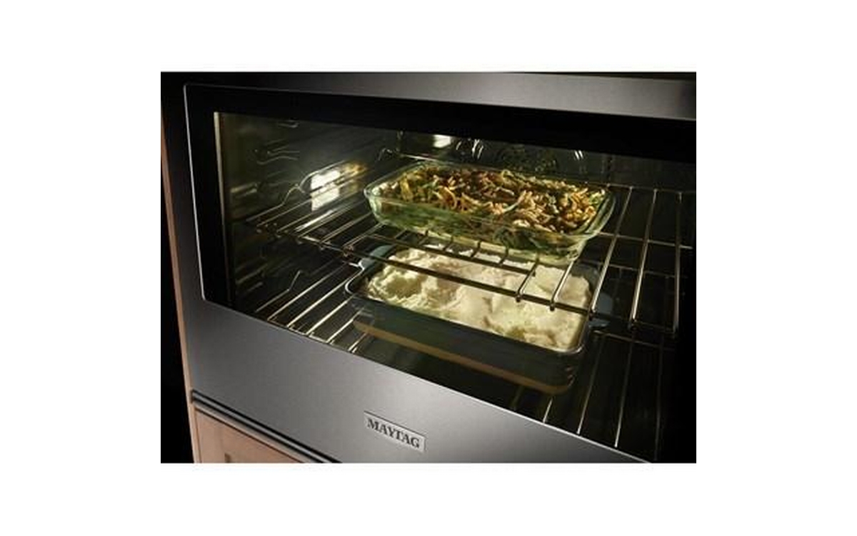 Cook what you want, when you want it in this Maytag® 30 inch single wall oven with air fry. This wall oven air fryer combo is ready for whatever recipe you throw at it, backed by convenient features like No-Preheat Air Fry, True Convection and Variable Broil. Get quick, crispy results with No-Preheat Air Fry, even heat baking with True Convection and the char you want with Variable Broil.