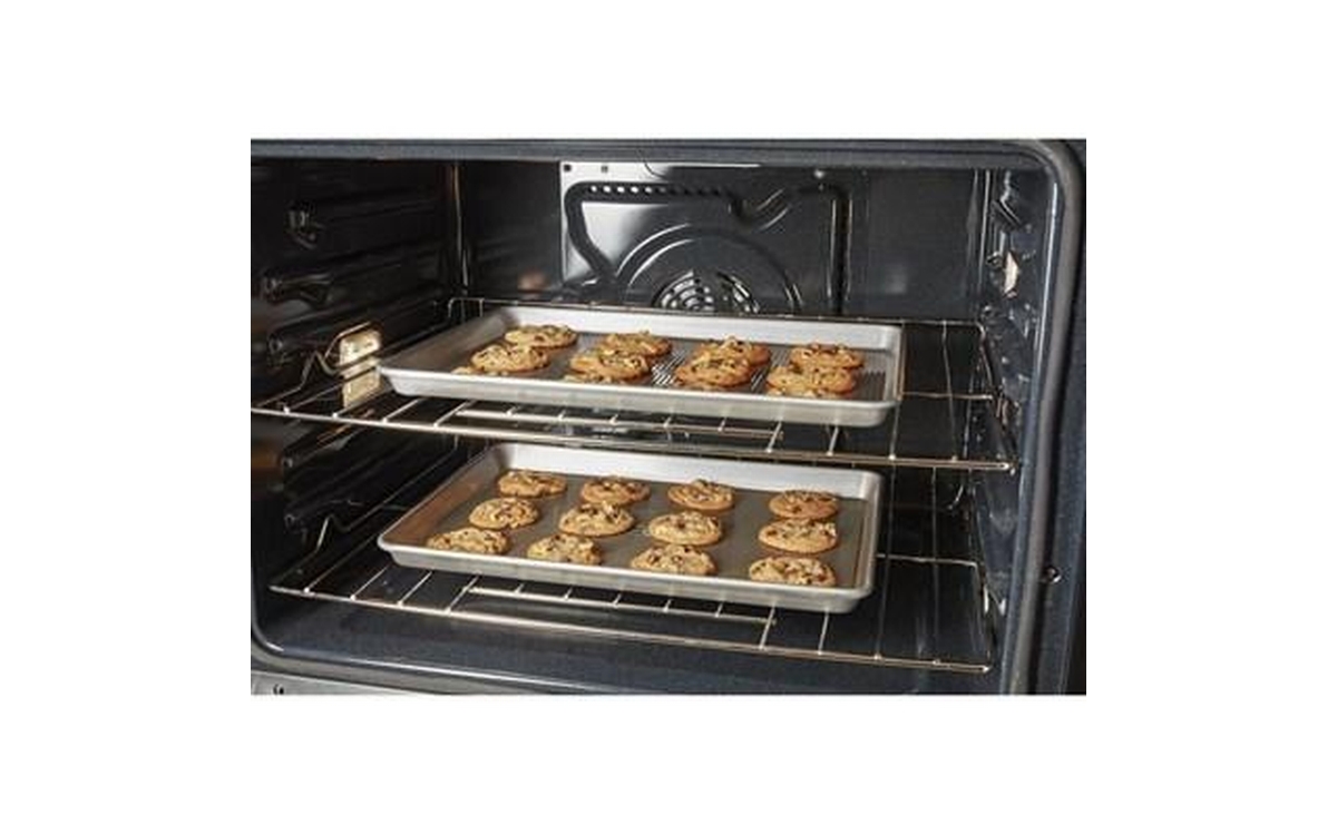 Bake multiple dishes using a third heating element and a fan to more evenly distribute hot air around the oven.*