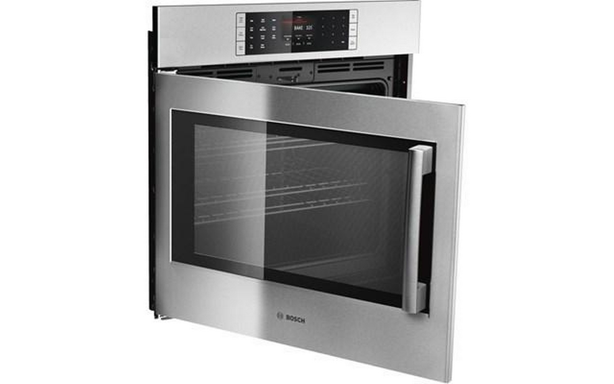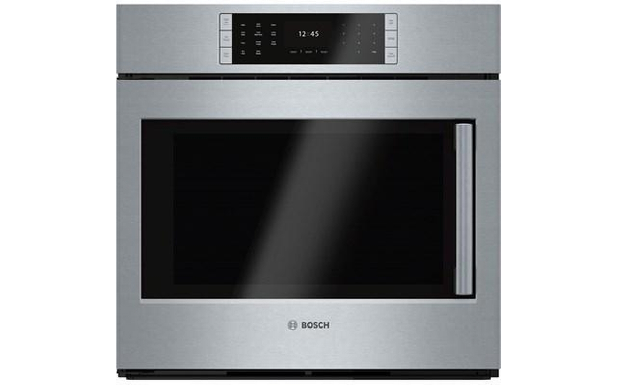 Bosch 30" Benchmark™ series stainless steel single wall oven. The Bosch wall oven features a side opening door for easier cavity access and a High-Resolution TFT user interface. The Color TFT Touch control with SteelTouch™ buttons makes it easier to operate the oven.