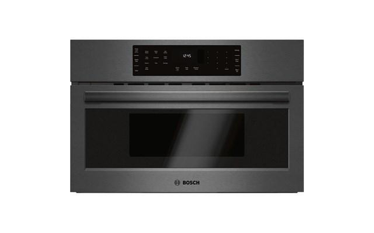 This Bosch 30-inch, 800 Series built-in speed oven features SpeedChef® cooking, LED lighting, 1000 W of microwave power and convection technology.