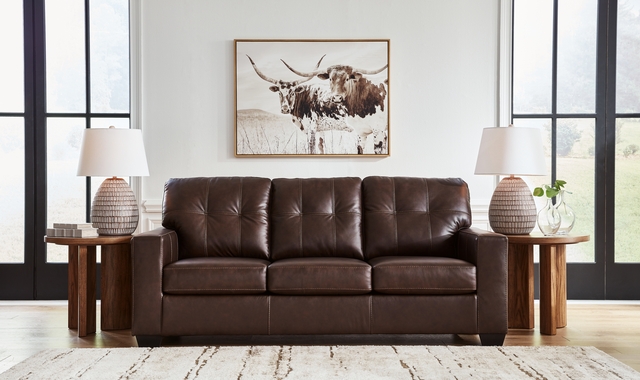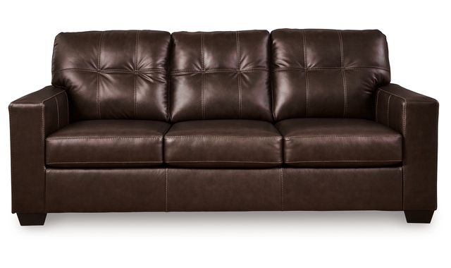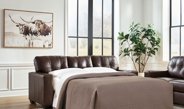 Whether your inspiration is contemporary or classic, this queen sofa sleeper's good looks and affordable luxury are hard to deny. Its clean-lined silhouette and skillfully matched leather and faux leather upholstery offer a transitional sensibility that's right at home in your home. Ample cushions with tufted details invite you and your besties to relax in comfort. Plus, a pull-out queen mattress, made with quality memory foam, comfortably accommodates overnight guests.