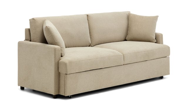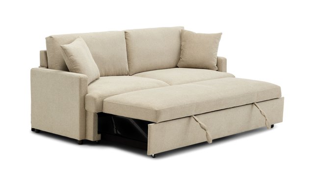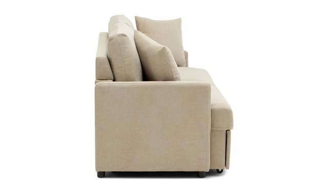 Condo Sofa with Integrated Bed This minimalist contemporary style with slim armrests is an ideal space-saving solution for any small living space. The structure is made of solid wood and plywood, pocket springs on No-Sag springs and high-density foam padding. Two cushions are included.