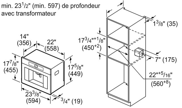 General information Coffee Machine Type : Machines à café automatique Power supply : Électrique 120V Coffee capacity : 500g Used capsule capacity : 10 capsules Water tank : 2.4L Kettle : Stainless steel Grinder : Ceramic Adjustable grinding size : Yes Adjustable water quantity : Yes Energy saving mode : Yes Maintenance Descaling indicator : Yes Full bin indicator : Yes Removable water tank : Yes Main Finish : Stainless Steel