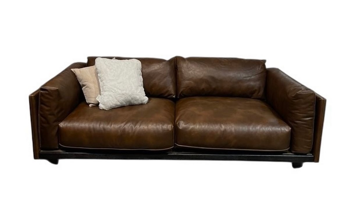 Fixed sofa, VINTAGE model by BO MEUBLE - Vegan leather upholstery, vegetable leather made from plants - Grizzly brown color - Dark wood base