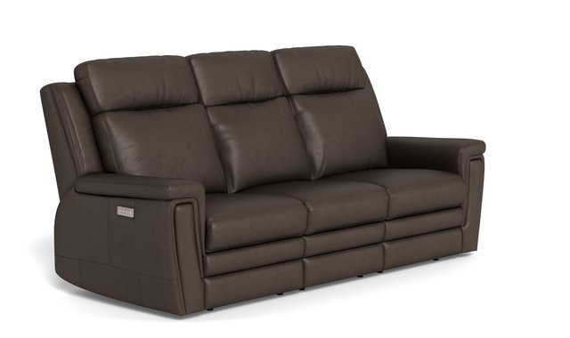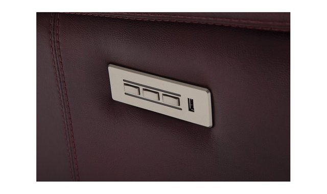 Motorized, reclining sofa, 3-way adjustable leather combo. Electrically adjustable headrest, lumbar and reclining all activated by an elegant, discreet switch. Sturdy, infinitely comfortable and full of practical features, it features plush cushions and cushion-tray armrests. This sofa is not only elegant and comfortable, but also offers advanced features for personalized comfort.