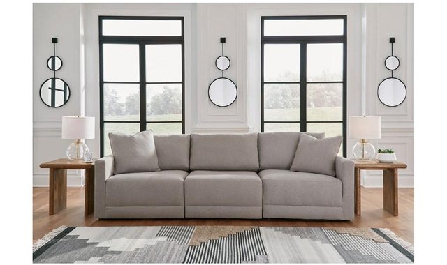 | Additional Information | • Includes 3 modular pieces: left-arm facing corner chair, armless chair and right-arm facing corner chair • Modular pieces can float anywhere; sides are finished (with no connectors) • Corner-blocked frame • Attached seat cushions; reversible back cushions • High-quality foam cushions wrapped in poly fiber • Throw pillows included • Pillows with feather-fiber blend • Polyester/cotton/nylon upholstery • Non-skid legs • Platform foundation system resists sagging 3x better than spring system after 20,000 testing cycles by providing more even support • Smooth platform foundation maintains tight, wrinkle-free look without dips or sags that can occur over time with sinuous spring foundations |