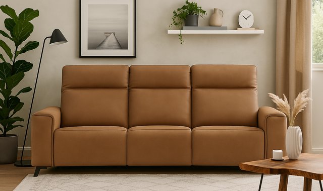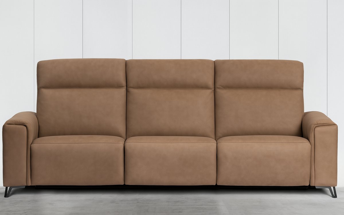 The Fabrice sofa by Elran is designed to combine modern elegance with advanced ergonomics. Its genuine leather upholstery adds a refined look, making it a perfect fit for contemporary living rooms. The seats are generously padded, offering firm yet comfortable support.