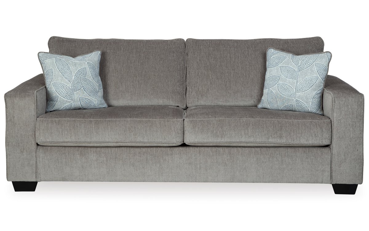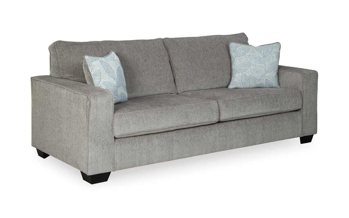 This sofa is the epitome of contemporary style and comfort. With its clean lines and elegant armrests, it has a modern profile that blends perfectly into any interior. Upholstered in a light gray chenille fabric, this sofa is not only pleasant to the touch, but also hard-wearing and easy to maintain. The plump cushions offer exceptional comfort, ideal for relaxing after a long day. In addition to its sophisticated look, this sofa is accompanied by subtly patterned decorative cushions, adding a touch of charm and modernity to the ensemble. Versatile and elegant, Ashley's Altari sofa in light gray fabric is a perfect choice for those seeking a combination of style and functionality in their living room.
