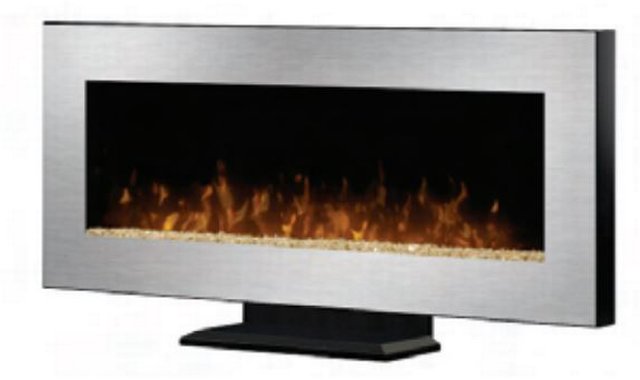 Model # DWF1207SB Electric Dimplex Fireplace The Celebrity wall-mount fireplace is the perfect balance of form and function; showcasing a luminous stainless steel, high-polished metal surround. This unit creates a warm appeal with high-impact. The minimalist design and realistic patented LED fl ame that dances on a bed of coloured and silvered glass pieces create a contemporary and alluring effect, making it the perfect piece for any space and allowing it to easily adapt into any style setting.