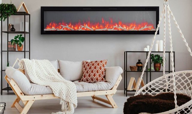 Description Completely transform any space with the Entice 42 Wall-Hanging Electric Fireplace. The full flame pattern creates a striking visual impact, especially with the ability to change the flame color and ember bed to match your mood and style. Have full control over your fireplace with the remote, easily adjusting the flame intensity, colors, ember bed color, brightness, blower, heat output, and timer. Ready to go right out of the box, no gas fitter required, just hang the Entice on the wall and plug in. The shallow depth means that this fireplace doesn't intrude into your living space. A reflective rear panel expands the depth of the flames for a more immersive experience without taking up physical space in your room. For a more seamless look, this electric fireplace can be fully or partially recessed into a wall. See the fireplace and not the frame with a minimalist, nearly frameless finish. Complete any room with an easy-to-install Entice 42 Wall-Hanging Electric Key Features The Napoleon Entice™ 42 Wall Hanging Electric Fireplace is 16.94-inches tall, 42-inches wide, and 5.4-inches deep (43.03 cm tall, 91.44 cm wide, 13.82 cm deep) Quickly heat large rooms up to 400 square feet thanks to the robust heat output of 5000 BTU's and 1,500 Watts powering the unit Ready to use right out of the box, just hang on the wall and plug it in to a regular 120V outlet The black, nearly frameless finish surrounding this modern, linear, electric fireplace creates a minimalist look that doesn't interfere with your décor, instead it enhances the fire aspect of the fireplace The controls are easy to use, illuminating when you need them and dimming to hide when not in use. This ensures you have complete control without the illuminated buttons detracting from the overall look of the fireplace while you are relaxing Easily match the flame color and ember bed to your décor or mood by selecting one of ten flame and ten ember bed color options Enjoy this fireplace any time of day with the high intensity LED lights in both the flames and ember bed, ensuring that no matter how bright it is, you can still take pleasure in the view of your fireplace Large crystal clear cubes sparkle with contemporary luxury, reflecting the beautiful Colours of the flames and the ember bed lights Installation is fast and easy with the included bracket for hanging. The unit is ready to go right out of the box, only taking a few minutes and couple of screws to hang This fireplace can be installed recessed fully into the wall, meaning that it won't protrude into the room at all. This provides a clean and seamless, contemporary look Don't get up, you can operate this fireplace from the comfort of your favourite spot with the included, full feature, remote control Birch and Driftwood logs available as add-ons to further customize the design.
