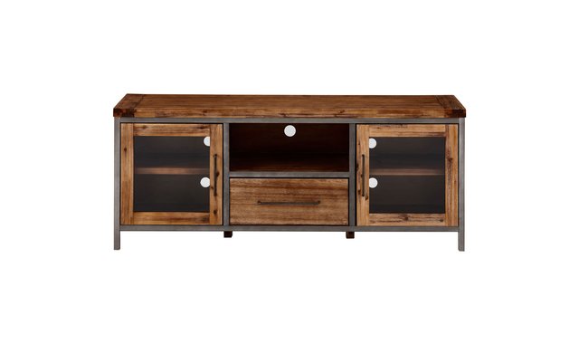 TV cabinet from the Mimosa collection by Tuff Avenue 1 drawer and 2 glass doors. Made of acacia wood and metal. Complete the picture with our wide selection of coffee tables, lamps, sofas, armchairs or loveseats and rugs to suit your taste. Browse the section below for other products that may be of interest to you for more ideas. No assembled.