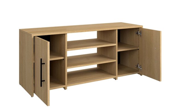 JAMES TV Stand: Elegance and Functionality Combined for the Perfect Entertainment Space The JAMES collection TV stand combines functionality and style, perfect for modern living spaces. Made from thermofused melamine, this stand is designed to withstand daily use while maintaining its elegant appearance. Available in multiple colors with the refined Prelude finish, each option offers a sophisticated texture and look. For the ''Sheer Beauty" color, the stand features the Karisma finish, which faithfully imitates the grain and authentic feel of natural wood, combining durability with a realistic appearance. The stand is equipped with tubular metal handles, adding a modern and sophisticated touch. The fixed shelves in the central section ensure sturdiness and strength to hold your multimedia equipment, while adjustable shelves are located behind each door, offering customizable storage options. With its elegant yet practical design, this stand is the ideal choice to organize and enhance your entertainment space.