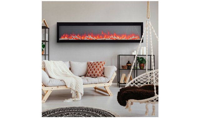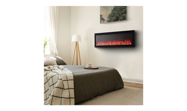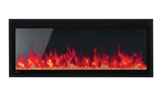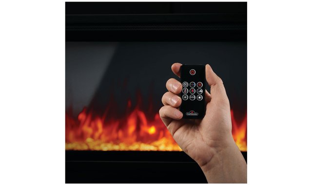 Completely transform your space with the Entice 42 wall-mounted electric fireplace. The play of flames produces a remarkable visual effect, with the option of changing the color of the flames and ember bed to suit your style and mood. The remote control gives you full control of the fireplace, easily adjusting flame intensity and color, ember bed color, brightness, blower, heat output and timer. Ready to use right out of the box, no gas installer is required, just hang the Entice on the wall and plug it in. The shallow cabinet prevents the fireplace from encroaching on your living space. A reflective back panel creates a depth effect for the play of flames, giving you a more authentic experience without taking up more space in your room. For a more seamless look, this electric fireplace can be fully or partially recessed into a wall. Admire the fireplace, not the frame, thanks to the minimalist, virtually frameless front. Enhance your space with the easy-to-install Entice 42 wall-mounted electric fireplace. Admire the fireplace, not the frame, thanks to the minimalist, virtually frameless front. Enhance your space with the easy-to-install Entice 42 electric wall fireplace. The Entice 42 electric wall fireplace from Napoleon measures 16.94 inches high, by 41.75 inches wide, by 5.4 inches deep (43.03 cm high, 106.05 cm wide, 13.82 cm deep). Quickly heat large rooms up to 400 sq. ft. with 5000 BTU heating power and 1500 watts of power. Ready to use right out of the box, simply plug into a standard 120 V outlet. The virtually frameless black facade that surrounds this modern electric linear fireplace creates a minimalist effect that complements your decor while highlighting the flames. The easy-to-use controls light up when you need them and dim when not in use. This gives you total control of the fireplace without the distraction of illuminated buttons while you relax. Easily adapt the flames to your decor or even your mood by selecting one of six flame color options. Enjoy this fireplace any time of day, thanks to the high-intensity LED lights of the flame set and ember bed. No matter how bright the day, you'll always be able to enjoy your fireplace. Large cubes of clear crystals shine with a luxurious, contemporary glow, reflecting the superb colors of the flames and lights of the ember bed. Installation is quick and easy, thanks to the included wall bracket. The unit is ready to use straight out of the box. Wall installation takes just a few minutes and requires only a few screws. This fireplace can be fully recessed into a wall, which means it won't encroach on the room in any way, giving it a contemporary, sleek and harmonious look. You can operate this fireplace from the comfort of your favorite seat, thanks to the multi-function remote control included.