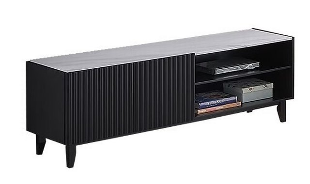 Collection Luna Made in Malaysia T.V. Unit Marble finish MDF Black color Solid and veneer rubberwood