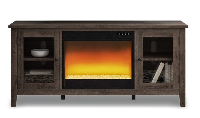 With its replicated weathered oak finish and minimalist charm, this TV stand with fireplace option is right in tune with your relaxed approach to high style. Beautifully made to accommodate your media equipment, it’s well equipped with adjustable shelving, cutouts for wire management and a pair of glass-front doors that enhance the clean-lined aesthetic. The look is ideal for modern farmhouse and contemporary settings.