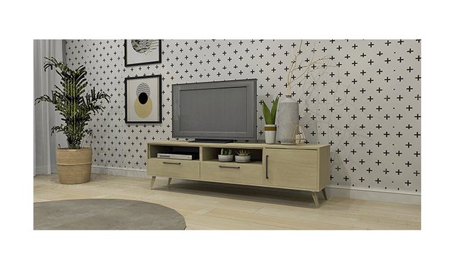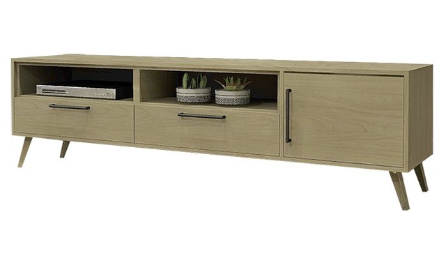 Scandinavian style 64-in. TV base available in harvest or harvest and white finishes. Add a nice end and coffee table of the same design to give more effect to your room