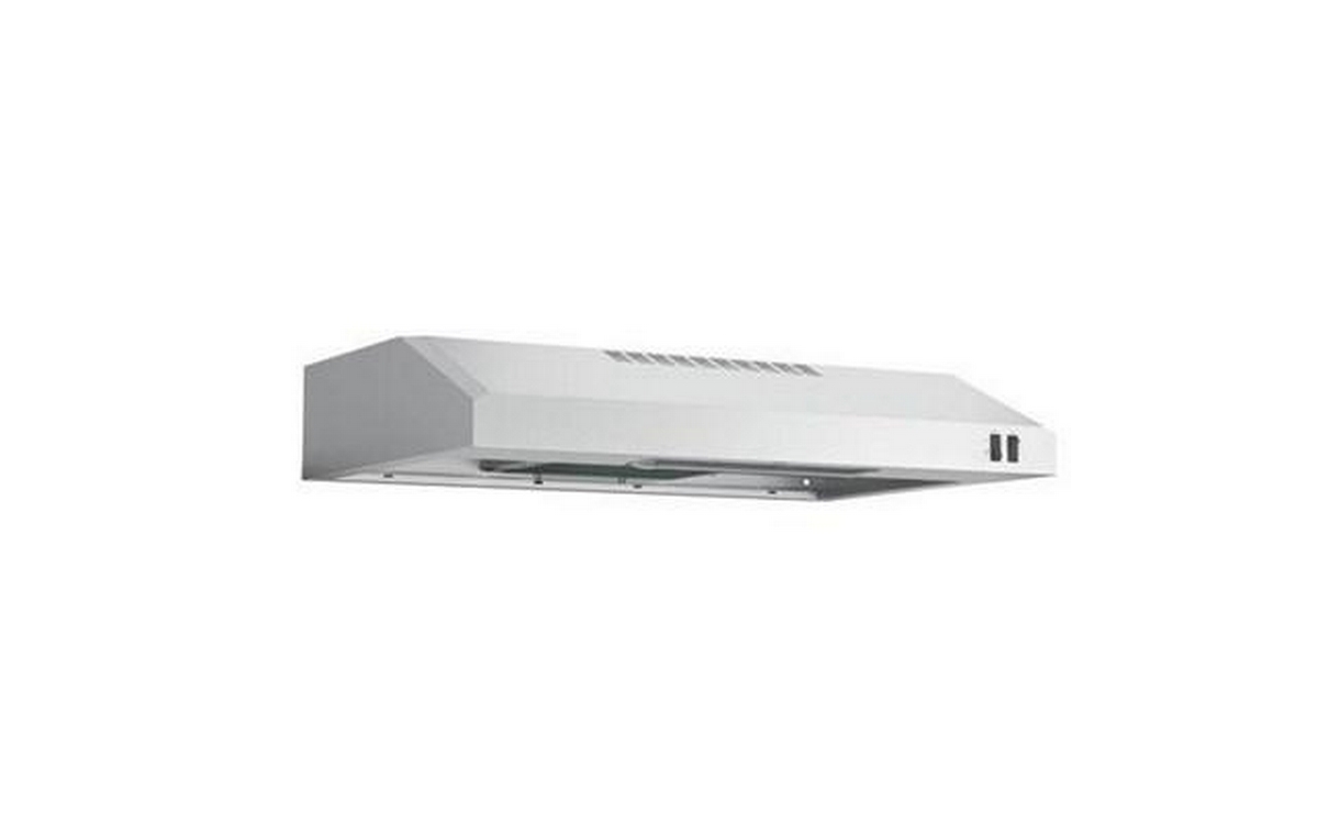 GE 30" under cabinet range hood features 2 speeds, 200 CFM, dishwasher-safe filter and on/off light controls.