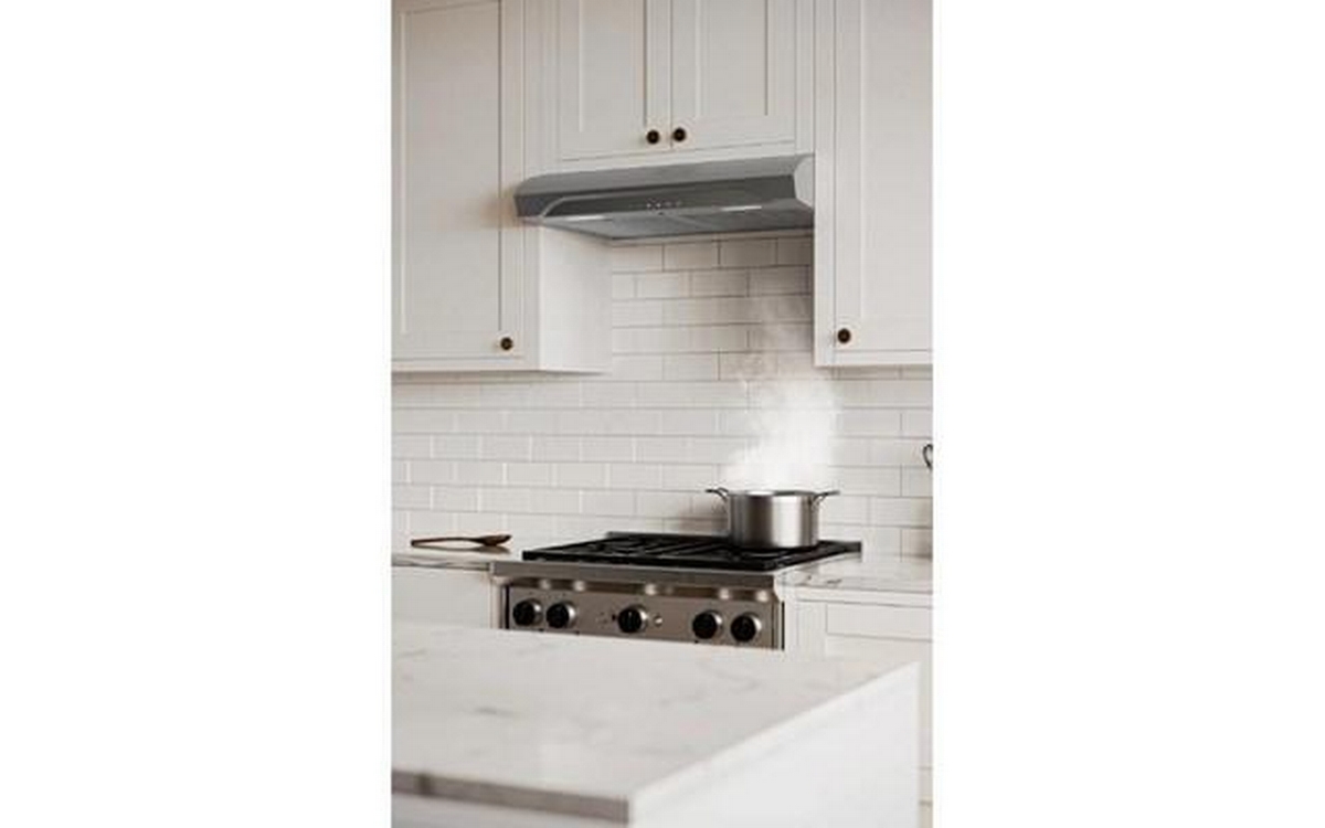 From the leader in residential indoor air quality, this under-cabinet range hood by Broan-NuTone is built to surpass industry standards with over 50 points of inspection, engineered as a reliable ventilation solution. The durable hood vent is equipped with SmartSense Auto Operation that automatically monitors and adjusts the ventilation power needed based on heat coming off the cooktop to maintain the integrity of the IAQ in your space. The Alta range hood is also up to 71% quieter: 1.1 sone is equivalent to a refrigerator running, so it won't interfere with daily life. The EZ1 Install System allows for a quick and easy 1-person installation, and the ENERGY STAR Certification is both code compliant and provides cost savings. Code Ready Technology (CRT) provides capability to reduce the 490 Max Blower CFM down to 300 or 400 CFM to meet local code requirements, and the 2-Level LED lighting modules and a 3-Speed whisper touch infrared control make cooking a breeze.