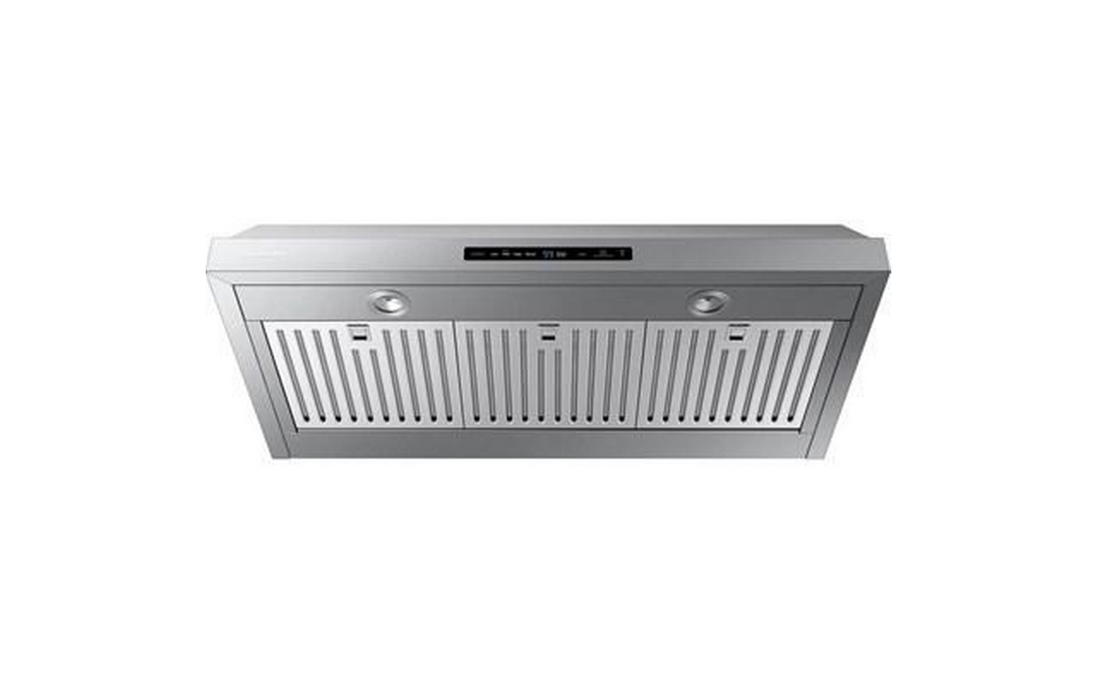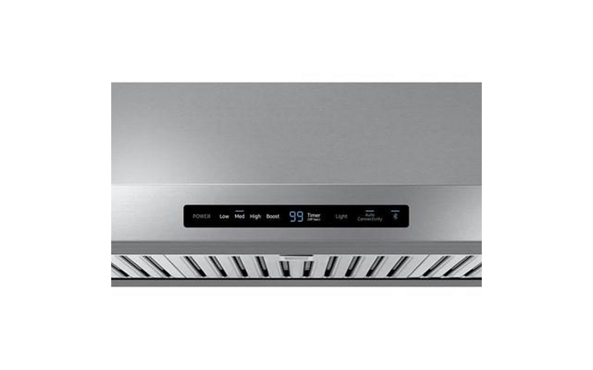 Samsung 36-inch under cabinet hood features Wi-Fi connectivity, Bluetooth connected, LED lighting and 4 fan speeds.