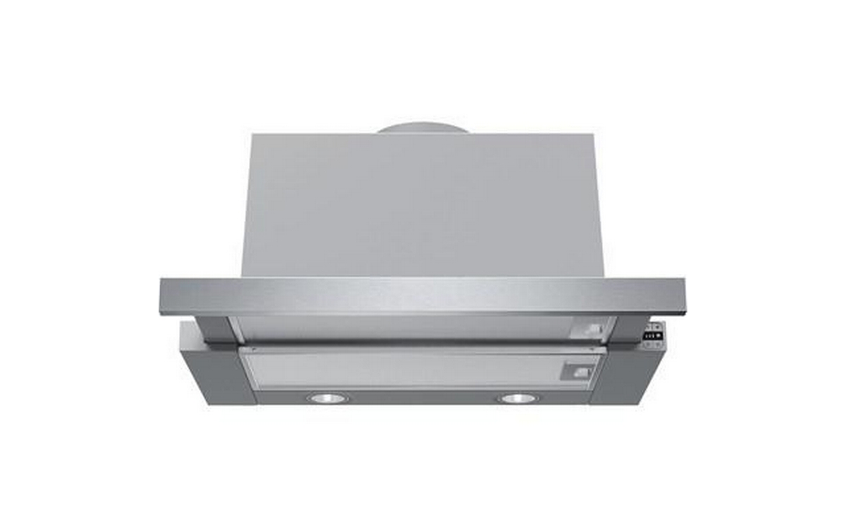 Bosch 500 Series 24" pull-out hood allows the user to close the hood when not in use. It features 400 CFM integrated blower, dishwasher safe aluminum mesh filters and 2 LED lights.