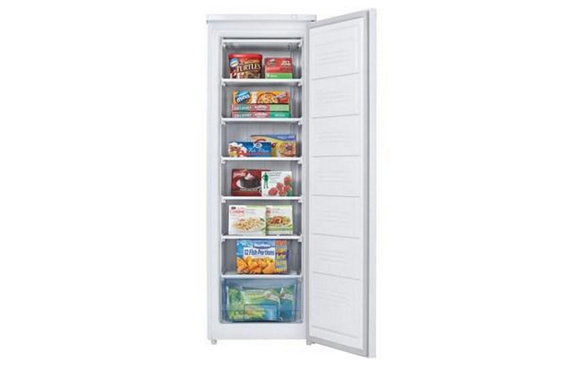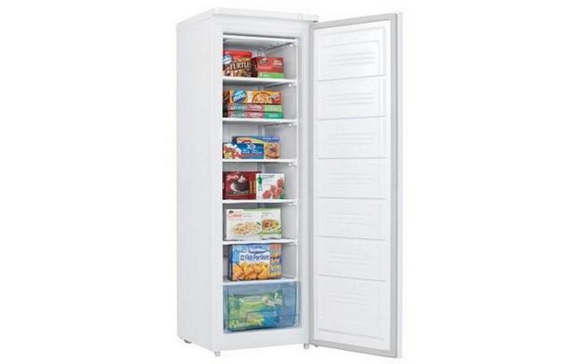 If your freezer just isn’t big enough for your family’s needs anymore you can always add a supplemental unit such as this extremely efficient model by Danby. The stylish freezer provides you with 7.1 cubic feet (200 liters) of ice-cold storage space and it doesn’t take up much room due to its popular upright design. It’s the ideal appliance for homes and cottages. Organizing your food items is made easy with the six quick-freeze shelves and one plastic crisper. The valued Energy Star rating means it will help keep your power bills down. This model runs as smoothly as possible with the precise, easy-to-program mechanical thermostat and the manual defrosting system. You’ll also find it boasts a smart scratch-resistant worktop for your extra accessories and the reversible door hinge is designed for either left or right-handed opening.