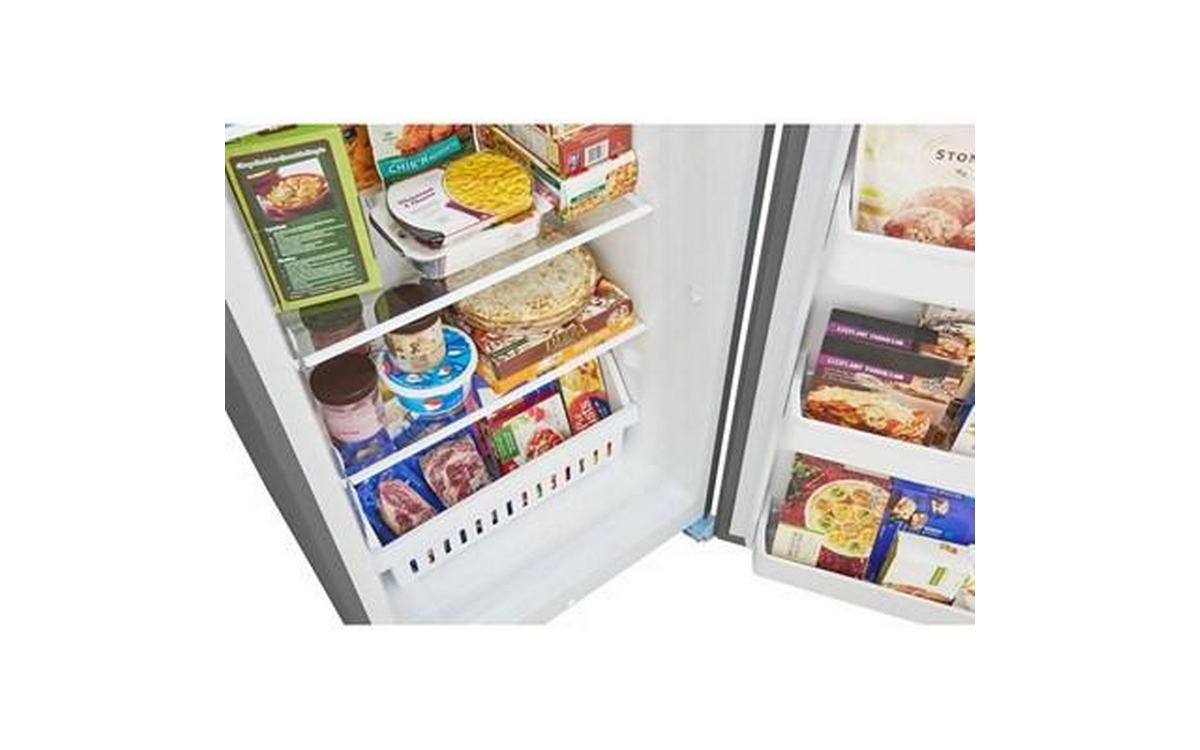 The 16 cu. ft. upright freezer offers ultimate flexibility with its convertible freezer-to-refrigerator feature and garage-ready design. It ensures consistent freezing with the EvenTemp™ cooling system and provides flexible organization. Enjoy peace of mind with power outage assurance and the door ajar and high temp alarms.