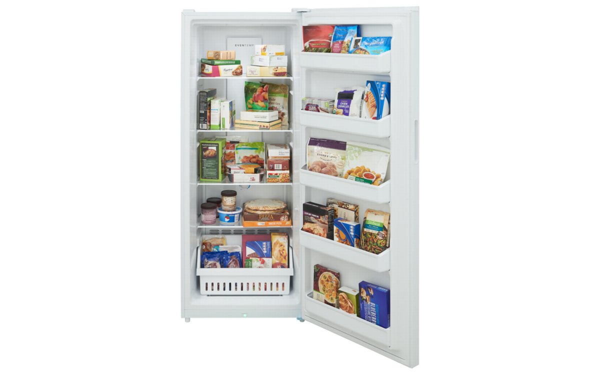The 13 cu. ft. upright freezer offers ultimate flexibility with its convertible freezer-to-refrigerator feature and garage-ready design. It ensures consistent freezing with the EvenTemp™ cooling system and provides flexible organization. Enjoy peace of mind with power outage assurance and the door ajar and high temp alarms.