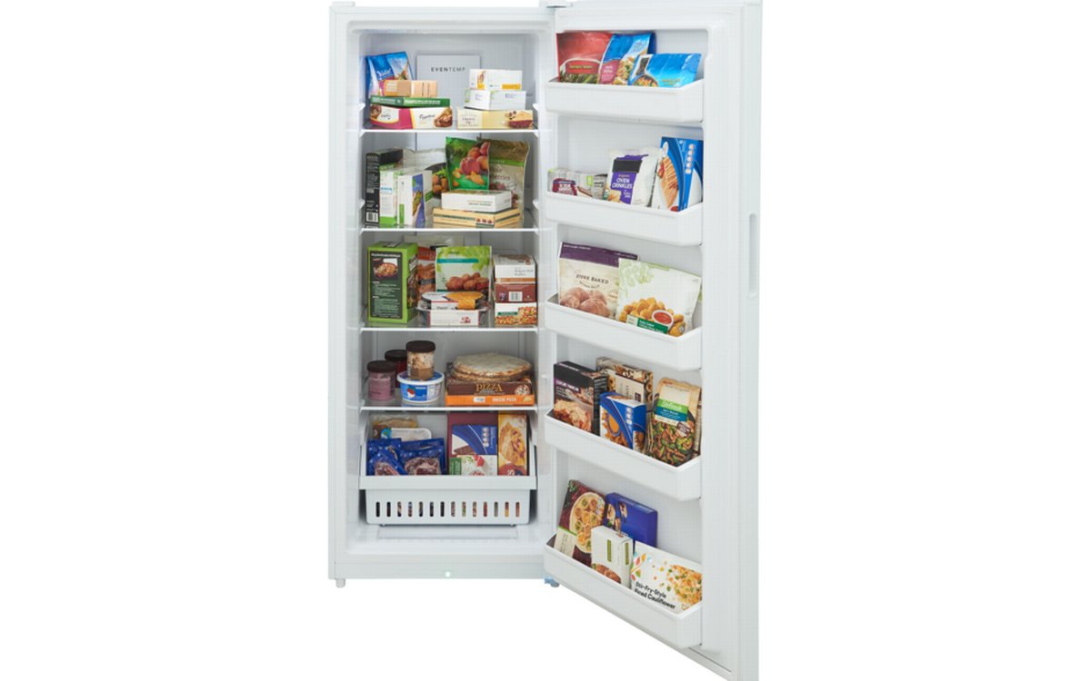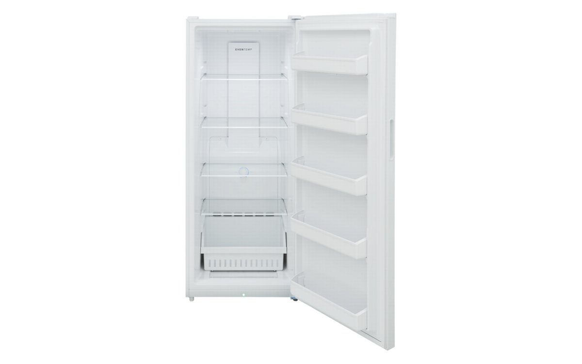 The 16 cu. ft. upright freezer offers ultimate flexibility with its convertible freezer-to-refrigerator feature and garage-ready design. It ensures consistent freezing with the EvenTemp™ cooling system and provides flexible organization. Enjoy peace of mind with power outage assurance and the door ajar and high temp alarms.