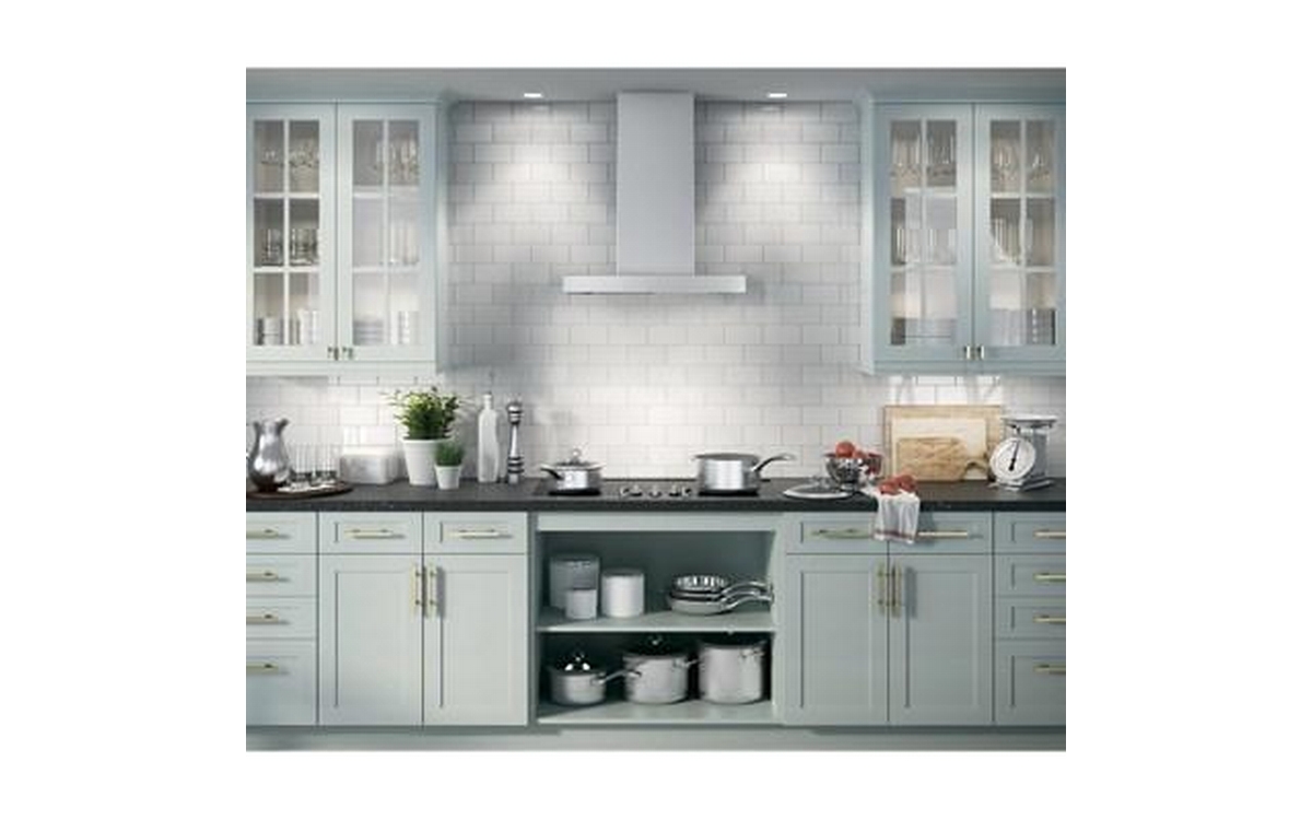 This 30-inch wide wall mount hood features a 610 CFM, LED backlit glass touch control and a 4-speed vent.