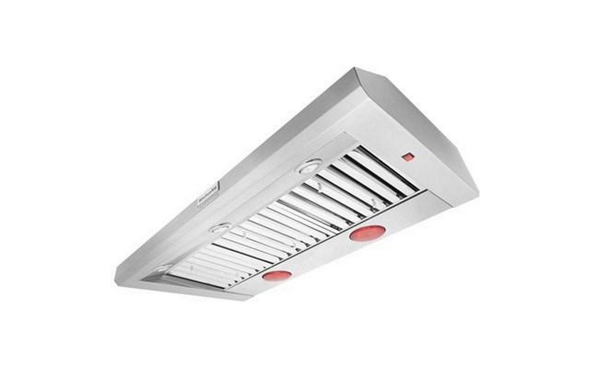 Designed to pair with 48-inch KitchenAid® Commercial-Style Ranges and Rangetops, this 48-inch wall-mount canopy range hood equips your kitchen with powerful ventilation. 105,000 BTU rating allows this vent hood to keep up with high-heat cooking on multiple burners. Two food warming heat lamps hold cooked items at serving temperature for up to an hour while you finish other dishes.