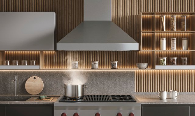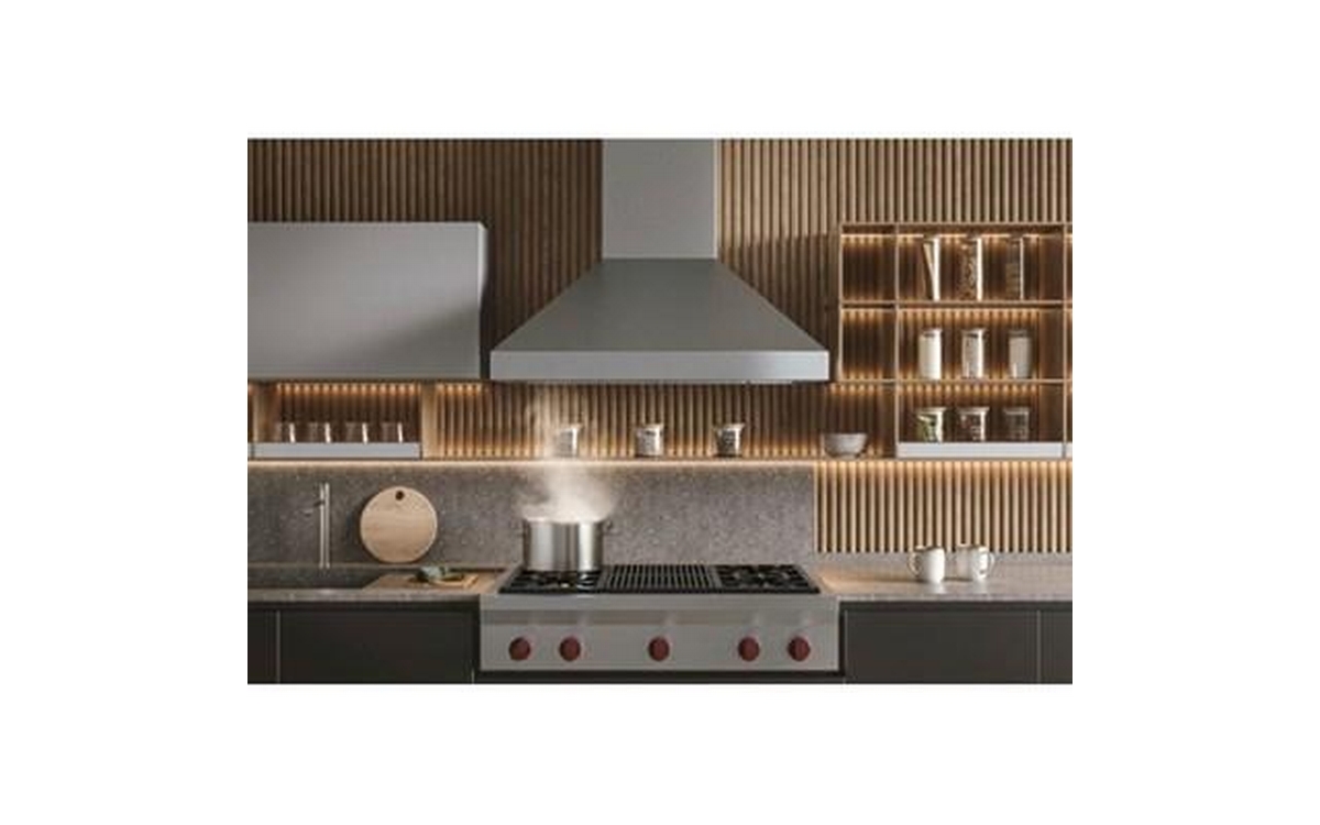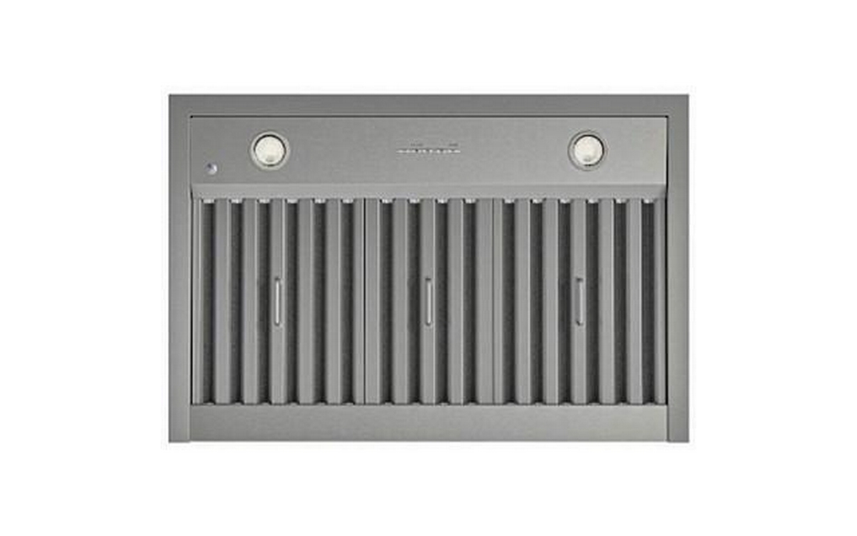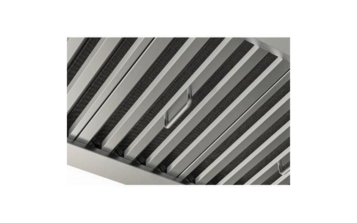 • Distinctive, dishwasher-safe hybrid baffle filters combine aluminum mesh and stainless steel to effectively capture grease for a cleaner, odor-free kitchen