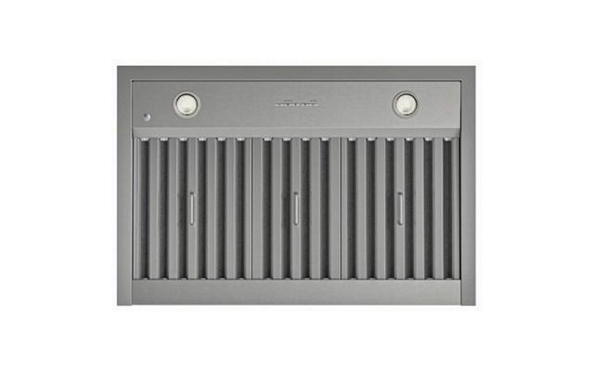 • Distinctive, dishwasher-safe hybrid baffle filters combine aluminum mesh and stainless steel to effectively capture grease for a cleaner, odor-free kitchen