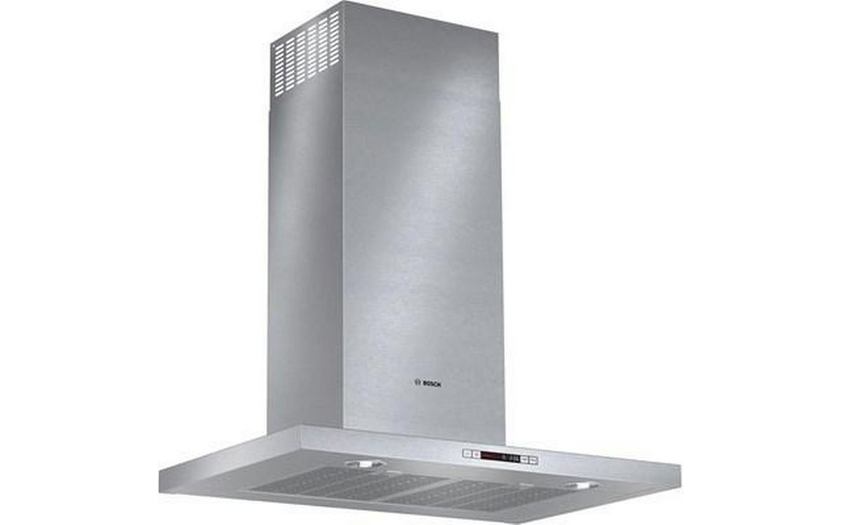 Bosch 30" 500 Series box canopy chimney hood. This hood features a 600 CFM blower, touch controls with LCD display and four speeds.
