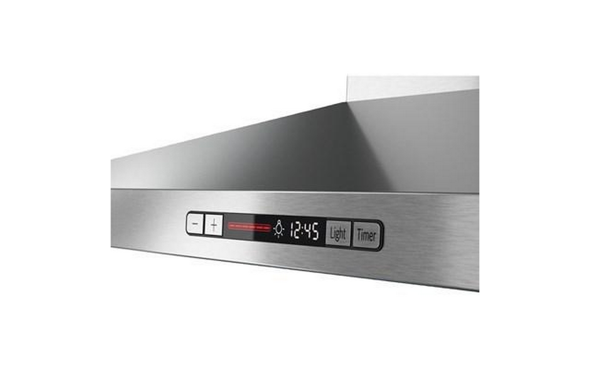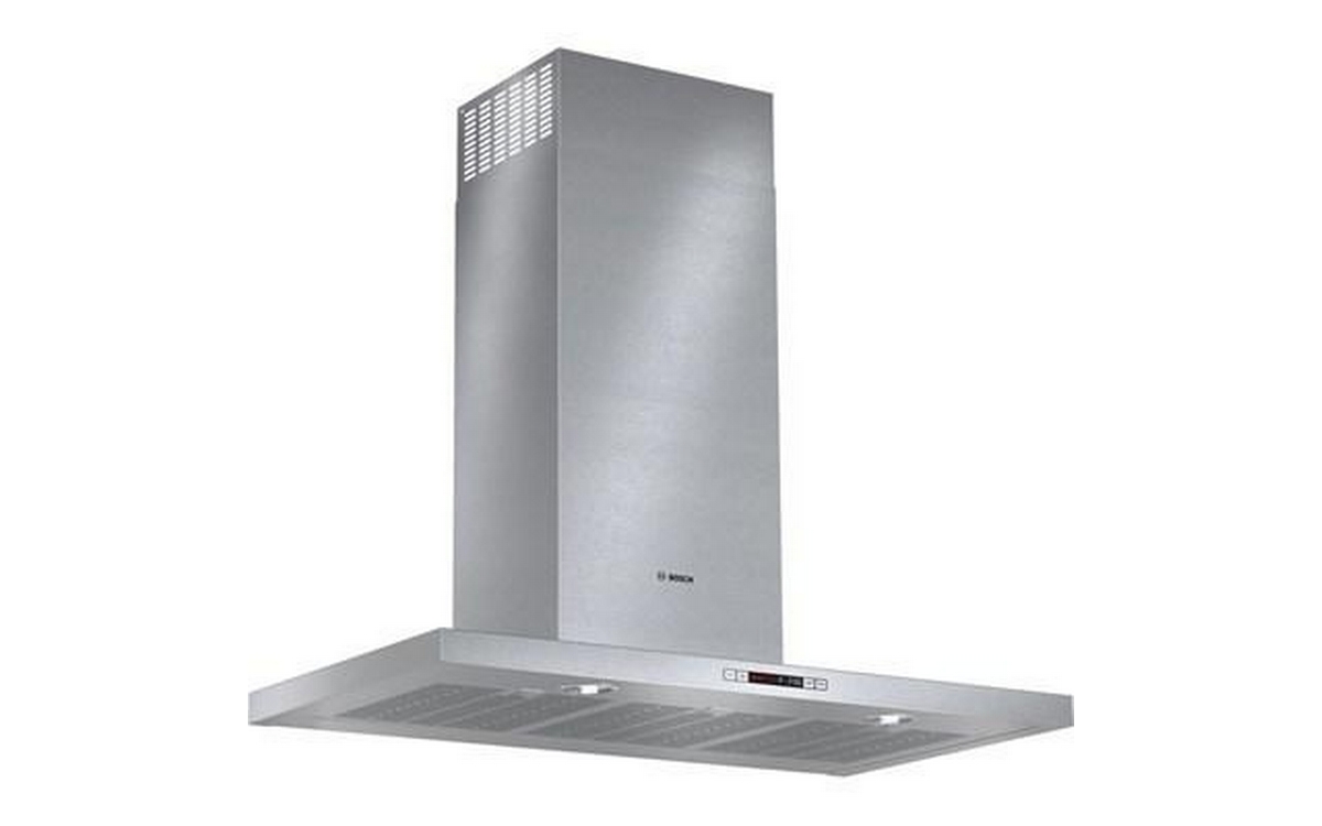 Bosch 36" 500 Series box canopy chimney hood. This hood features a 600 CFM blower, touch controls with LCD display and four speeds.