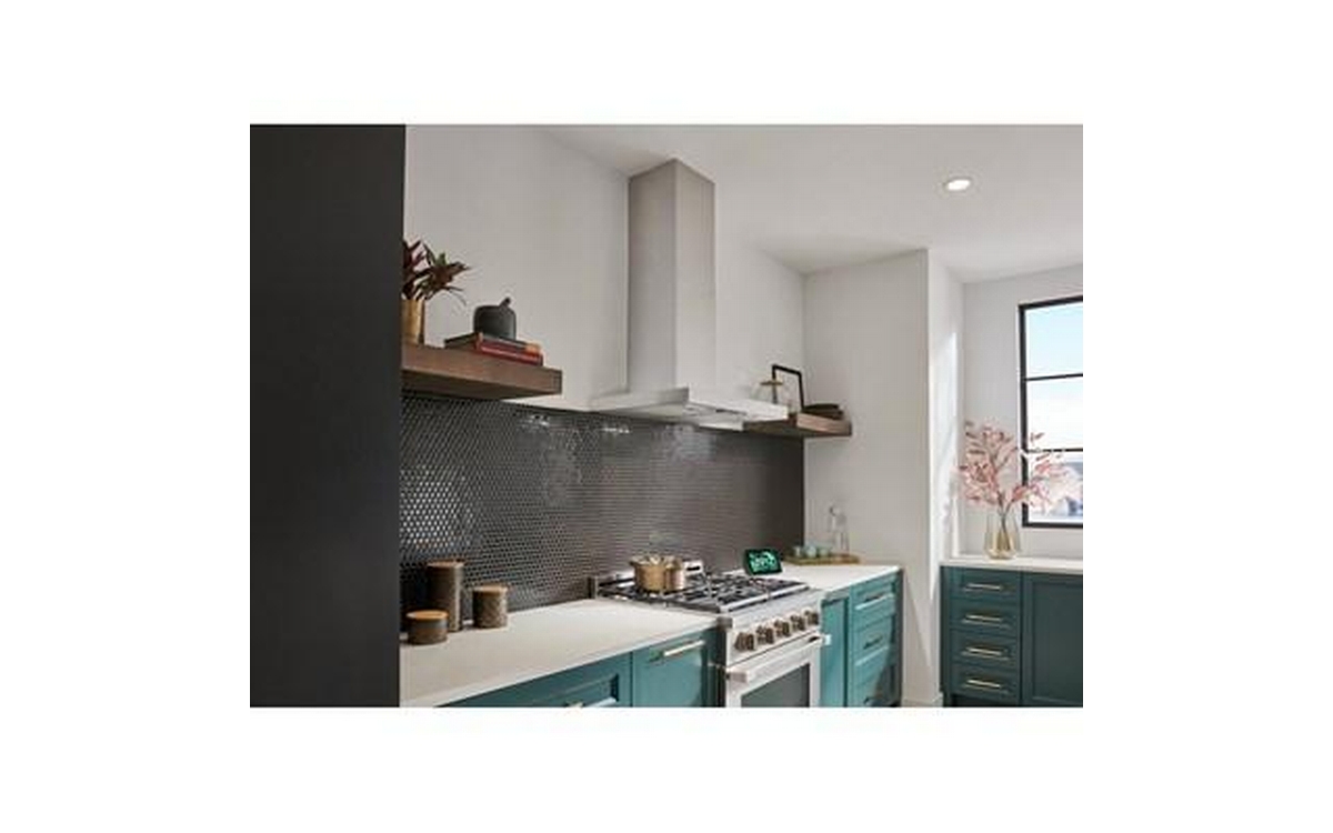 The distinctive T-shape chimney style hood offers a modern touch with powerful ventilation that can match the challenges of any home chef while maintaining a innovative design that fits into almost any kitchen.