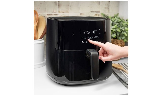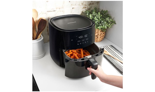 3-in-1 Air Fryer - 5.3 quart 3 ways to cook in 1 air fryer Get maximum versatility with 3 cooking modes in 1 air fryer including Air Fry, Bake, and Reheat. Deliver all of the flavor and none of the guilt with Air Fry Air Fry allows you to make healthier and delicious meals with less oil. Achieve bakery results at home Bake your family favorite dishes and desserts including cakes, dinner rolls, cinnamon buns, and more. Reheat your favorites and enjoy crispy results Use the Reheat function to revitalize leftovers for the same restaurant-quality, crispy and delicious results. Skip the guesswork with 5 Pre-Programmed Recipes Prepare family dishes in just one touch with 5 recipe buttons: Meat, Chicken, Fish, Vegetables, and French Fries. Easy-to-clean detachable basket The lightweight inner basket can easily be detached from the EasyCollect tray. Durable non-stick coating allows for quick and easy clean up after cooking your meal.