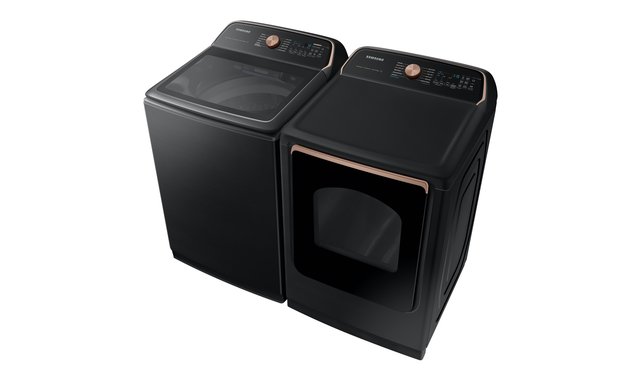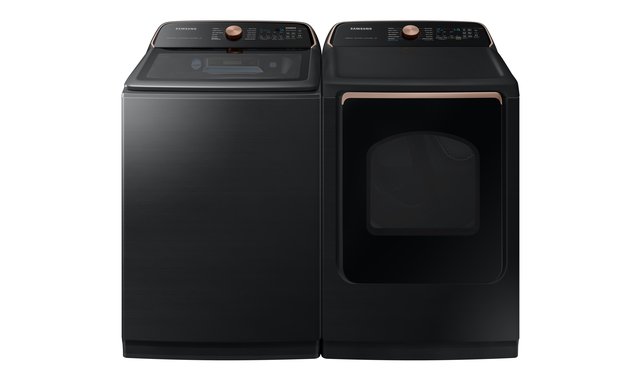 The Samsung 6.2 cu ft top load washer and 7.4 cu ft electric steam dryer combo delivers smart, pet-friendly laundry care. The washer features Auto Dispense for up to 12 loads of detergent, a built-in Active WaterJet for pre-treating stains, and a Pet Care cycle with dual pet hair filters that remove up to 6x more pet hair. The matching dryer includes Pet Care Dry, Multi-Steam, and Steam Sanitize+, ideal for removing allergens, bacteria, and wrinkles. Sensor Dry adjusts cycle time and temperature automatically to protect your fabrics. Both units are Wi-Fi SmartThings enabled, letting you monitor and control cycles remotely from your smartphone.