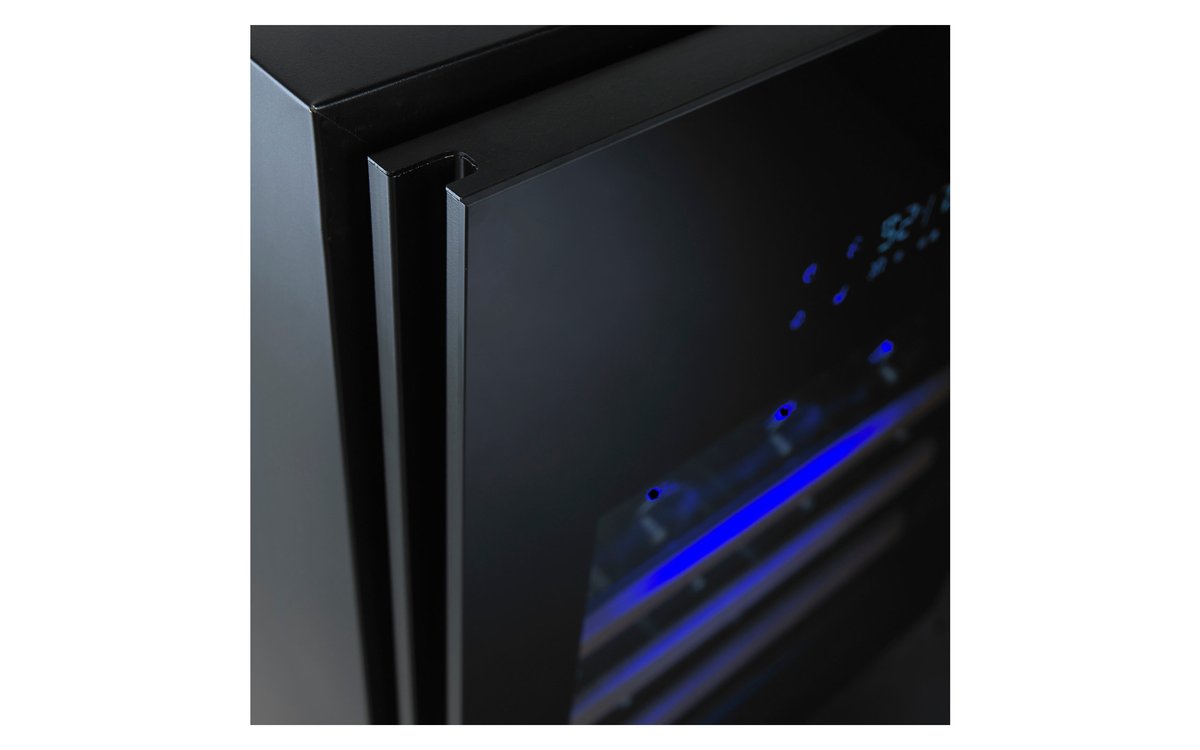 This built-in cellar with is full glass door can hold up to 194 bottles*. With its simple temperature zone and compressor, one of the quietest on the market, it is the ideal service cellar. His 15 sliding shelves on ball-bearings allow you to see all the bottles.