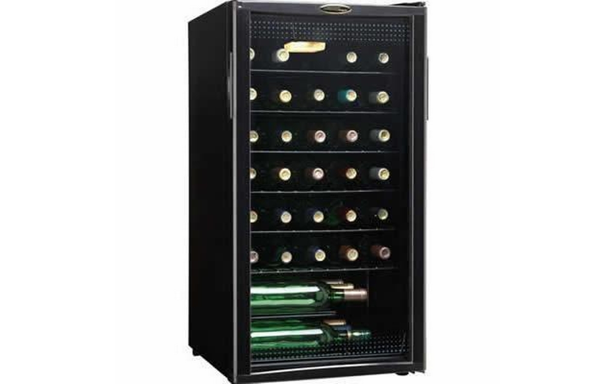 The Danby Designer® free-standing wine cooler is an economical and convenient alternative to cool and store wine. This model offers a generous 35 bottle capacity and includes an interior display light to show off your collection. The handsome all black cabinet suits almost any décor and will entice even the most seasoned of wine tasters.