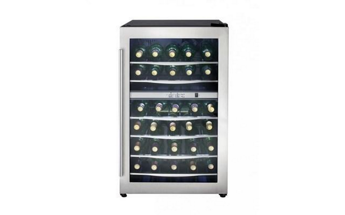 This trendy free-standing wine cooler is just what you need if you’re looking for a unit that can store reds and whites separately. This technologically-advanced model can hold and chill up to 38 bottles of your favourite brands and comes with two separate compartments which can be independently controlled when it comes to the temperature setting. This allows you to store your white wine at one specific temperature and your reds and rose’s at another. Both compartments can be easily programmed anywhere between 4°C and 18°C (39°F and 64°F) and the bright white LED thermostat can easily be monitored the through the classy tempered-glass door.