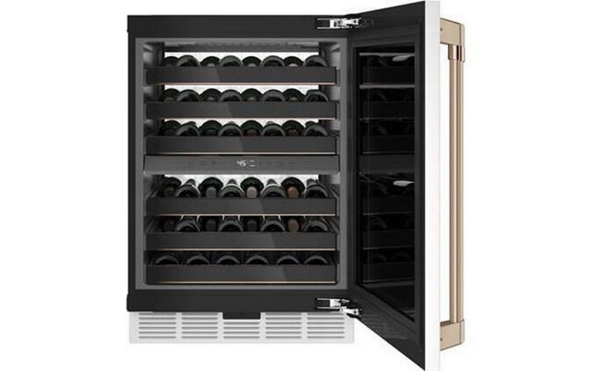 This Café wine cooler features Smart Technology, dual-zone temperature control and can accommodate up to 46 bottles of wine.